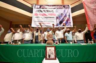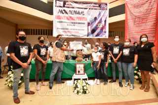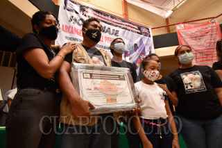 CHILPANCINGO, GUERRERO, 04SEPTIEMBRE2020.- Poco más de un centenar de profesores de la Coordinadora Estatal de Trabajadores de la Educación Guerrero (CETEG), acompañados de representantes de la dirigencia nacional de la Coordinadora Nacional de Trabajadores de la Educación (CNTE) y de diversas organizaciones sociales y sindicales, realizaron un homenaje póstumo al que en vida fuera el secretario general de esta organización docente y Sección XIV de la CNTE, Arcángel Ramírez Perulero. En dicho homenaje, entregaron a sus hijos y hermanos de Ramírez Perulero un reconocimiento por la trayectoria de este luchador social que perdiera la vida por el COVID-19 el pasado 27 de agosto, en el hospital de ‘El Quemado’ en el puerto de Acapulco. Ramírez Perulero, nació en el municipio de San Marcos de la región de la Costa Chica, fue integrante de la Comisión Colectiva cetegista 2007-2010, fue representante del PRD municipal y más tarde abandonó ese partido para ser el candidato de Morena a diputado local por el distrito 13 en 2015. En 2017, fue electro como Secretario General de la CETEG, sustituyendo a Reyes Ramos Guerrero y en ese entonces señalo que el estado se encontraba saliendo de una convulsión que había sido generada por las movilizaciones que se realizaban para exigir la presentación con vida de los 43 estudiantes de la Escuela Normal Rural ‘Raúl Isidro Burgos’ de Ayotzinapa. Formó parte de la dirigencia nacional de la Coordinadora Nacional de Trabajadores de la Educación (CNTE), participando en diversas mesas de trabajo con el presidente Andrés Manuel López Obrador, donde se inició la construcción de acuerdos para reestructurar la ‘Reforma Educativa’ del ex presidente Enrique Peña Nieto, donde presentó el proyecto de modelo de ‘Educación Altamiranista’, mismo que aún se encuentra en propuesta de aplicarse en escuelas de nivel básico. FOTO: DASSAEV TÉLLEZ ADAME/CUARTOSCURO.COM