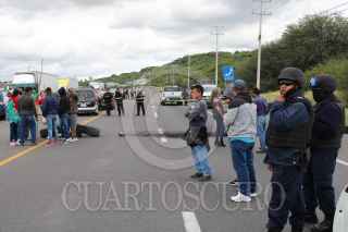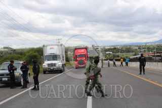 CELAYA, GUANAJUATO, 05SEPTIEMBRE2020.- Con llantas y vehículos habitantes de la comunidad de San Juan del Llanito, de Apaseo el Alto, en Celaya, bloquearon la carretera panamericana Celaya-Querétaro, por la inseguridad que viven a diario. Cansados de los homicidios, robos, y enfrentamientos entre hombres armados en la comunidad y sus alrededores, los pobladores desde las 10 de la mañana bloquearon la carretera, exigiendo la presencia de autoridades federales para que vigilarán las calles de la comunidad. Tras tres horas autoridades estatales y la Guardia Nacional llegaron a un acuerdo y formaron un documento donde se comprometieron a instalarse en la comunidad con un centro de mando y patrullar las calles. Alguna soersonas prendieron llantas y bloquearon los cuatro carriles, lo que provocó largas ilas de más de 10 kilómetros. FOTO: DIEGO COSTA/CUARTOSCURO.COM