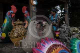 AMATENANGO DEL VALLE, CHIAPAS, 05SEOTIEMBRE2020.- Mujeres originarias de la región aprovechan la llegada de turistas después de que durante meses las ventas de sus artesanías bajarán debido a la falta de turistas por la pandemia mundial de COVID 19. Las mujeres salen temprano para acomodar sus artesanías y esperar turistas para poder vender y sostenerse. Comentan que durante abril y mayo solo se dedicaron a la producción ya que la carretera estaba prácticamente vacía y nadie llegaba a comprarles. FOTO: ISABEL MATEOS /CUARTOSCURO.COM