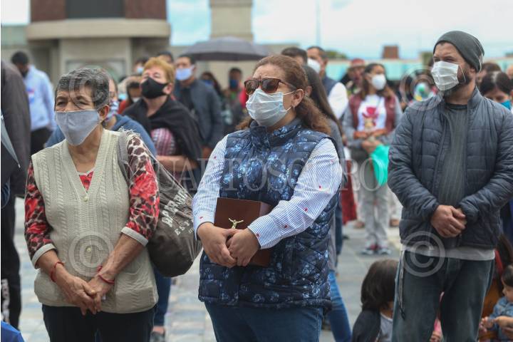CIUDAD DE MÉXICO, 06SEPTIEMBRE2020.- Cada dos horas se están celebrando misas presenciales en la Basílica de Guadalupe, tras el término de misma, personal de limpieza desinfecta bancas y pisos. En el intermedio se realizan misas al exterior en donde el personal de seguridad les piden a los presentes que mantengan la sana distancia. Para el ingreso de los feligreses al recinto se les mide la temperatura, se les pide que desinfecten manos y calzado, además de respetar la sana distancia aunque sean familiares, no se permite el acceso ya iniciada la misa. FOTO: MOISÉS PABLO/CUARTOSCURO.COM
