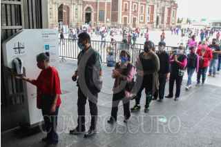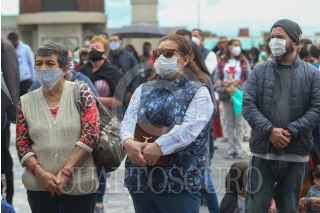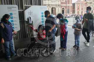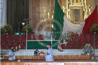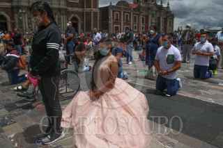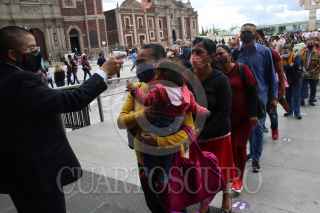 CIUDAD DE MÉXICO, 06SEPTIEMBRE2020.- Cada dos horas se están celebrando misas presenciales en la Basílica de Guadalupe, tras el término de misma, personal de limpieza desinfecta bancas y pisos. En el intermedio se realizan misas al exterior en donde el personal de seguridad les piden a los presentes que mantengan la sana distancia. Para el ingreso de los feligreses al recinto se les mide la temperatura, se les pide que desinfecten manos y calzado, además de respetar la sana distancia aunque sean familiares, no se permite el acceso ya iniciada la misa. FOTO: MOISÉS PABLO/CUARTOSCURO.COM