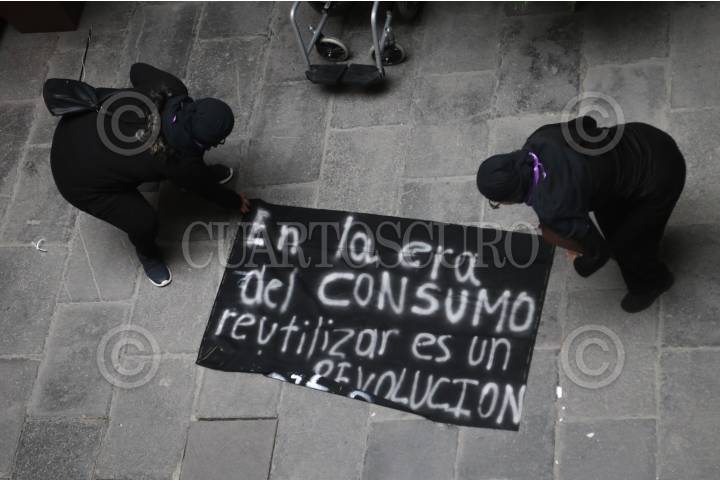 CIUDAD DE MÉXICO, 06SEPTIEMBRE2020.- Colectivas feministas que mantienen tomadas las instalaciones de la Comisión de Derechos Humanos de la Ciudad de MÉXICO (CNDH) desde hace tres días no han tenido respuesta y solución a sus demandas, durante el día renombraron simbólicamente el inmueble como "Casa de Refugio ni una menos México". FOTO: GRACIELA LÓPEZ /CUARTOSCURO.COM
