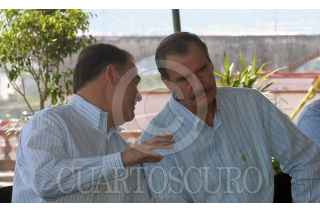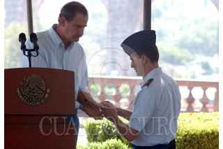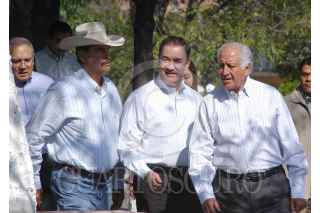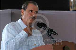 QUERETARO, QUERETARO 2MAYO2006.- El presidente de la república Vicente Fox Quezada acompañado por los gobernadores Francisco Garrido de Querétaro y Marcelo de los Santos de San Luis Potosí; asistió a la presentación del proyecto Acueducto II que pretende solucionar el problema de abasto de agua por los próximos 25 años en la capital del estado. FOTO: Demián Chavez/CUARTOSCURO.COM