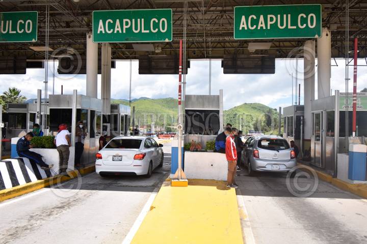 CHILPANCINGO, GUERRERO, 07SEPTIEMBRE2020.-Estudiantes de la Escuela Normal Rural 'Raúl Isidro Burgos' de Ayotzinapa, tomaron el control de la caseta de cobro de 'Palo Blanco' en la autopista del Sol, con la finalidad de recaudar recursos y solventar los gastos de hospedajes y comidas de las organizaciones y estudiantes de la FECSM que apoyarán a los Padres y Madres de los 43 en las actividades del Sexto aniversario de la desaparición forzada de sus compañeros en la ciudad de Iguala. Ahí aplaudieron la ratificación del auto de formal prisión en contra de María de los Ángeles Pineda Villa de Abarca, lamentando que hasta el momento no se le vincule con los hechos ocurridos en Iguala en el 2014. FOTO: DASSAEV TÉLLEZ ADAME/CUARTOSCURO.COM