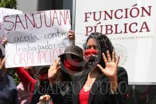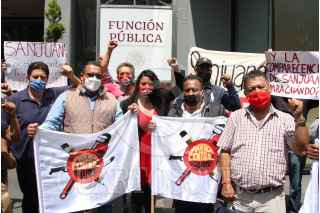 CIUDAD DE MÉXICO, 08SEPTIEMBRE2020.- Integrantes del Sindicato Único de Trabajadores de Notimex, realizaron un mitin a las afueras de la Secretaría de la Función Pública. Hasta el lugar llegó, Adriana Urrea, líder de dicho sindicato, quien acudió a comparecer ante dicha institución por una acusación en su contra por supuestos casos de corrupción. Así mismo los inconformes exigen una mesa de diálogo inmediata con Sanjuana Martínez, directora de Notimex, respeto a la vida sindical y reinstalación inmediata a trabajadores despedidos, esto a 201 días de huelga. FOTO: ROGELIO MORALES /CUARTOSCURO.COM
