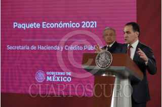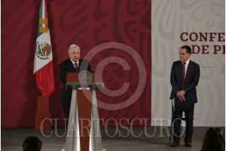 CIUDAD DE MÉXICO, 09SEPTIEMBRE2020.- Andrés Manuel López Obrador, presidente de México acompañado de Arturo Herrera, secretario de Hacienda y Crédito público durante la conferencia matutina que se lleva a cabo en Palacio Nacional. FOTO: ANDREA MURCIA /CUARTOSCURO.COM
