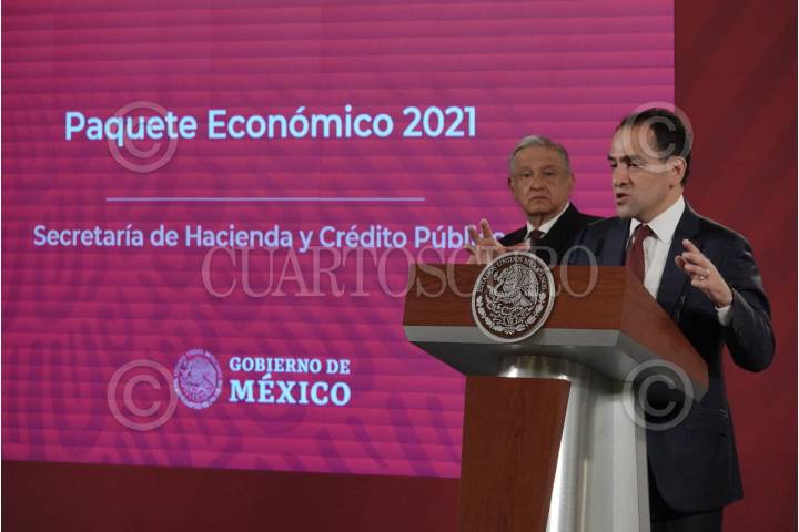CIUDAD DE MÉXICO, 09SEPTIEMBRE2020.- Andrés Manuel López Obrador, presidente de México acompañado de Arturo Herrera, secretario de Hacienda y Crédito público durante la conferencia matutina que se lleva a cabo en Palacio Nacional. FOTO: ANDREA MURCIA /CUARTOSCURO.COM