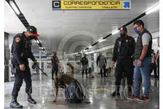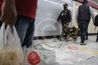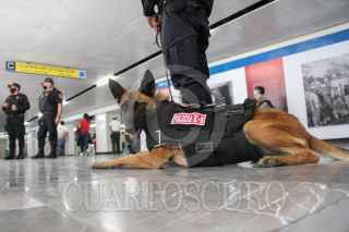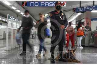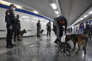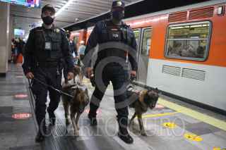 CIUDAD DE MÉXICO, 09SEPTIEMBRE2020.- Policías capitalinos en conjunto con elementos binomios caninos realizaron recorridos de seguridad por las estaciones de las líneas uno y dos del Sistema de Transporte Colectivo Metro, esto con el objetivo de la detección de armas, sustancias prohibidas, así como la inhibición de delitos dentro de las instalaciones del metro capitalino. FOTO: ROGELIO MORALES /CUARTOSCURO.COM