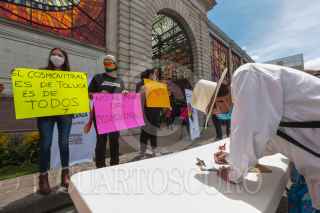 TOLUCA, ESTADO DE MÉXICO, 09SEPTIEMBRE2020.- Integrantes del movimiento Esperanza Ciudadana por México empezaron a recabar firmas para solicitar que el gobierno federal intervenga en el embargo del Jardín Botánico Cosmovitral y la Plaza Ángel María Garibay por una empresa privada a la cual le adeuda el ayuntamiento de Toluca desde administraciones pasadas, a pesar que el gobierno municipal desmintió esta versión, los demandantes sostienen que este edificio está embargado. FOTO: CRISANTA ESPINOSA AGUILAR /CUARTOSCURO.COM