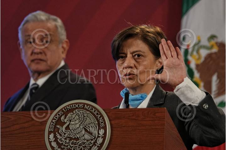 CIUDAD DE MÉXICO, 10SEPTIEMBRE2020.- Andrés Manuel López Obrador, presidente de México acompañado de Olga Sánchez Cordero, secretaria de Gobernación; Román Meyer Falcón, secretario de Desarrollo Agrario, Territorial y Urban; Manuel Bartlett Díaz, director general de la Comisión Federal de Electricidad (CFE); Diana Álvarez Maury, directora general del Banco del Bienestar; Blanca Jiménez Cisneros, directora general de la Comisión Nacional del Agua (Conagua), durante la conferencia matutina que se lleva a cabo en Palacio Nacional. FOTO: ANDREA MURCIA /CUARTOSCURO.COM