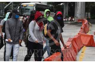 CIUDAD DE MÉXICO, 10SEPTIEMBRE2020.- Un grupo de encapuchados tomaron las casetas de cobro de la salida México-Cuernavaca, los inconformes en su mayoría jóvenes se manifestaron por la falta de empleo debido a la la pandemia por COVID-19, así mismo exigían un diálogo inmediato con autoridades de la Secretaría de Trabajo. FOTO: ROGELIO MORALES /CUARTOSCURO.COM