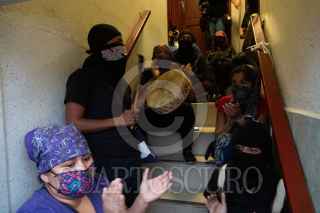 ECATEPEC, ESTADO DE MÉXICO, 10SEPTIEMBRE2020. - Colectivas feministas y familiares de víctimas, tomaron las instalaciones de la Comisión Nacional de Derechos Humanos del Estado de México (CODHEM). Al pedir el seguimiento de sus casos se les atendió vía telefónica pidiendo que se realizara trámite formal a través de la página web, lo que provocó molestia decidiendo quedarse hasta no resolver sus denuncias. FOTO: ANDREA MURCIA /CUARTOSCURO.COM