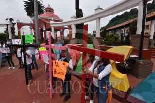 OCOYOACAC, ESTADO DE MÉXICO, 11SEPTIEMBRE2020.- Delegados de Ocoyoacac realizaron una Marcha Blanca para exigir un alto a la inseguridad, feminicidios, falta de servicios públicos en este municipio, caminaron por varias calles hasta llegar al Palacio Municipal. FOTO: CRISANTA ESPINOSA AGUILAR /CUARTOSCURO.COM