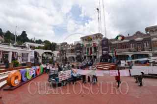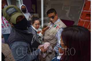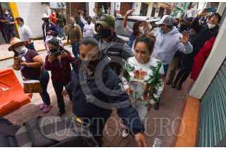 OCOYOACAC, ESTADO DE MÉXICO, 11SEPTIEMBRE2020.- Pobladores de Ocoyoacac acorralaron a la alcaldesa Anallely Olivares, al solicitar una audiencia con ella para discutir temas de seguridad del municipio y la encontraron en un salón de bellezaa media cuadra del palacio municipal, en donde de acuerdo a los vecinos se estaba arreglando las uñas, estuvo retenida por algunos minutos hasta que comenzaron a dialogar en la plaza municipal. FOTO: CRISANTA ESPINOSA AGUILAR /CUARTOSCURO.COM