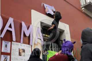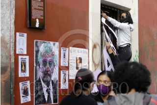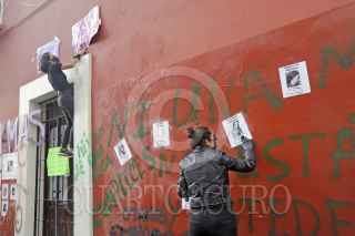 PUEBLA, PUEBLA, 11SEPTIEMBRE2020.- Colectivos Feministas se manifestaron cerrando de manera simbólica la Comisión Estatal de Derechos Humanos, en apoyo a mujeres que tomaron instalaciones en la Ciudad de México. FOTO: MIREYA NOVO/CUARTOSCURO.COM
