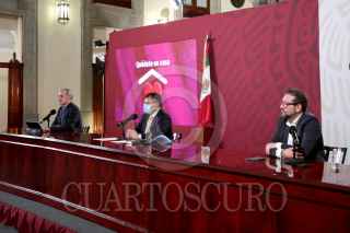 CIUDAD DE MÉXICO, 11SEPTIEMBRE2020.- Conferencia de prensa-informe diario sobre coronavirus covid-19 en México en el salón Tesorería de Palacio Nacional. La Presiden Hugo López-Gatell Ramírez, subsecretario de Prevención y Promoción de la Salud; Ernesto Acevedo Fernández, subsecretario de Industria, Comercio y Competitividad. Secretaría de Economía y Ricardo Cortés Alcalá, director general de Promoción de la Salud. FOTO: PRESIDENCIA/CUARTOSCURO.COM