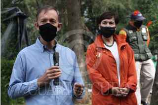 CIUDAD DE MÉXICO, 12SEPTIEMBRE2020.- Marina Robles, titular de la Secretaría del Medio Ambiente, y Roberto Linding, especialista en temas ambientales de la UNAM, encabezaron el el recorrido por la Tercera sección del Bosque de Chapultepec en donde se realizan trabajos de rehabilitación ambiental, la cual consiste en la tala de árboles de eucalipto que no es apto para el desarrollo de flora y fauna del bosque y sustituyéndolo por la plantación de dalia la cual es nativa de la tercera sección de Chapultepec. Así mismo se trabaja en una Biblioteca de Semillas adaptando construcciones previas que se encontraban abandonadas en el bosque. FOTO: ROGELIO MORALES /CUARTOSCURO.COM