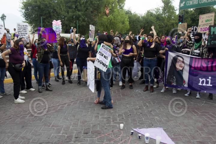 MONTERREY, NUEVO LEÓN, 12SEPTIEMBRE2020.- Un grupo de mujeres feministas se manifestaron en calles del centro de la ciudad donde exigieron justicia para mujeres violentadas y desaparecidas en Nuevo León. Las activistas acompañaron a la madre de una joven quien fue abusada sexualmente y falleció dentro de las instalaciones de un centro de rehabilitación ilegal. FOTO: GABRIELA PÉREZ MONTIEL / CUARTOSCURO.COM
