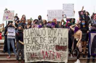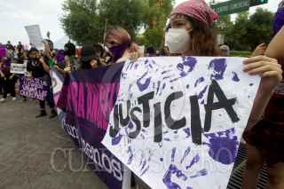MONTERREY, NUEVO LEÓN, 12SEPTIEMBRE2020.- Un grupo de mujeres feministas se manifestaron en calles del centro de la ciudad donde exigieron justicia para mujeres violentadas y desaparecidas en Nuevo León. Las activistas acompañaron a la madre de una joven quien fue abusada sexualmente y falleció dentro de las instalaciones de un centro de rehabilitación ilegal. FOTO: GABRIELA PÉREZ MONTIEL / CUARTOSCURO.COM