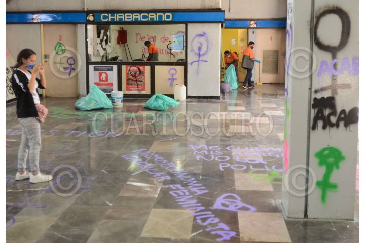 CIUDAD DE MÉXICO, 12SEPTIEMBRE2020.- Colectivos Feministas se manifestaron en la estación Chabacano de la Línea 2 del SCT Metro, destruyeron torniquetes y pintaron paredes durante su protesta. FOTO: ARMANDO MONROY /CUARTOSCURO.COM