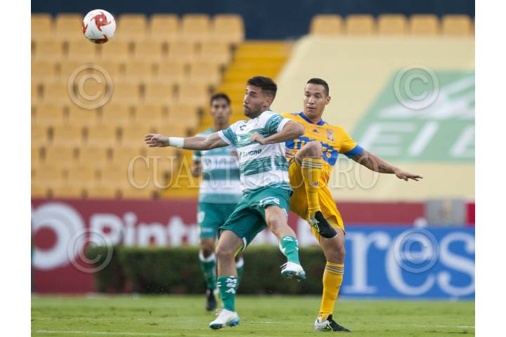 SAN NICOLÁS DE LOS GARZA, NUEVO LEÓN, 12SEPTIEMBRE2020.- Los Tigres de la UANL obtienen el triunfo en la jornada 10 de la Liga Guardianes 2020, en el estadio universitario, contra el equipo de Santos, dos goles por cero. FOTO: CUARTOSCURO.COM
