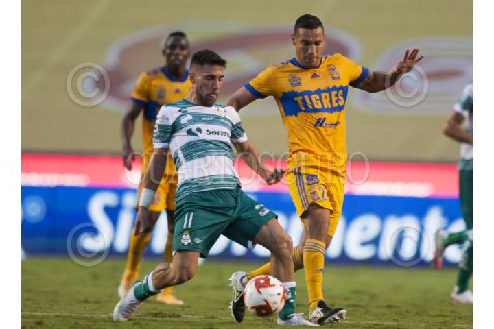 SAN NICOLÁS DE LOS GARZA, NUEVO LEÓN, 12SEPTIEMBRE2020.- Los Tigres de la UANL obtienen el triunfo en la jornada 10 de la Liga Guardianes 2020, en el estadio universitario, contra el equipo de Santos, dos goles por cero. FOTO: CUARTOSCURO.COM