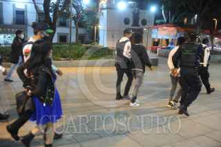 Ciudad de México, 14 septiembre 2020. Tres hombres jóvenes y una jovencita fueron puestos a disposición en CUH-8 en Pino Suarez, por el robo de equipo de cómputo de esta estación en la entrada de Izazaga, aprovechando que las activistas también realizaban pintas y destrozos en esta estación. Foto: Luis Carbayo/cuartoscuro.com