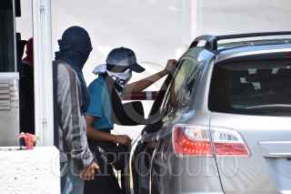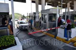 CHILPANCINGO, GUERRERO, 14EPTIEMBRE2020.- Estudiantes de la Escuela Normal Rural Raúl Isidro Burgos de Ayotzinapa continúan con la toma de casetas de la Autopista del Sol, este lunes tomaron la caseta de cobro de Palo Blanco, donde dejaron paso libre a los automovilistas a quienes les pedían una cooperación voluntaria. Los estudiantes explicaron que esta toma es para recaudar fondos y solventar las actividades de protesta del 6to año de la desaparición de sus 43 compañeros en Iguala, además que se construirá un Antimonumento a los 43 desaparecidos en el municipio de Ayutla. FOTO: DASSAEV TÉLLEZ ADAME/CUARTOSCURO.COM