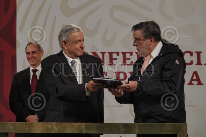 CIUDAD DE MÉXICO, 15SEPTIEMBRE2020. - Andrés Manuel López Obrador, presidente de México, acompañado de Jorge Alcocer Varela, secretario de Salud; Hugo López-Gatell Ramírez, subsecretario de Prevención y Promoción de la Salud y Julio Scherer Ibarra, consejero jurídico de la Presidencia durante la conferencia matutina que se lleva a cabo en Palacio Nacional Prevención y Promoción de la Salud y Julio Scherer Ibarra, consejero jurídico de la Presidencia, durante la conferencia de prensa que se lleva a cabo en Palacio Naciona en la cual se firmó documento solicitud para el senado de la República donde se pide enjuiciar a ex presidentes desde el año 1988. FOTO: ANDREA MURCIA /CUARTOSCURO.COM
