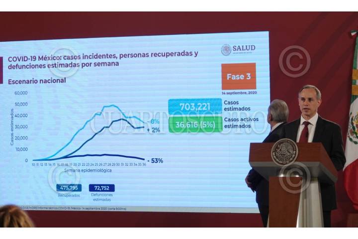 CIUDAD DE MÉXICO, 15SEPTIEMBRE2020. - Andrés Manuel López Obrador, presidente de México, acompañado de Jorge Alcocer Varela, secretario de Salud; Hugo López-Gatell Ramírez, subsecretario de Prevención y Promoción de la Salud y Julio Scherer Ibarra, consejero jurídico de la Presidencia durante la conferencia matutina que se lleva a cabo en Palacio Nacional Prevención y Promoción de la Salud y Julio Scherer Ibarra, consejero jurídico de la Presidencia, durante la conferencia de prensa que se lleva a cabo en Palacio Naciona en la cual se firmó documento solicitud para el senado de la República donde se pide enjuiciar a ex presidentes desde el año 1988. FOTO: ANDREA MURCIA /CUARTOSCURO.COM