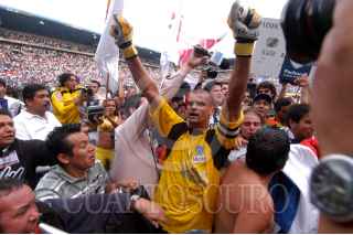 PACHUCA HIDALGO 14 MAYO 2006.- El delantero Adolfo "el Bofo" Bautista, lamenta la descalificación de la liguilla después de que Pachuca consiguió el pase a la final, empatando 4-4 en el marcador global con Chivas de último minuto en el Estadio Hidalgo. FOTO:Carlos Guzmán/CUARTOSCURO.COM