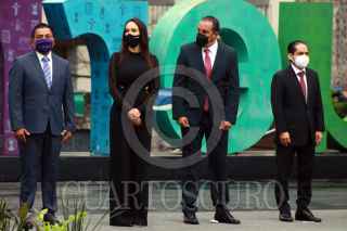 CUERNAVACA, MORELOS,16SEPTIEMBRE2020.- Cuauhtémoc Blanco Bravo, gobernador de Morelos encabezo el evento oficial por el CCX Aniversario de la Gesta de Independencia, en la plaza de armas de la capital. Lo acompaño su esposa Natalia Resendez y todos sus colaboradores. FOTO: MARGARITO PÉREZ RETANA /CUARTOSCURO.COM