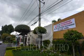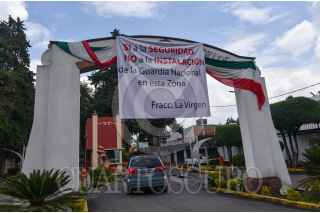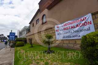 METEPEC, ESTADO DE MÉXICO, 16SEPTIEMBRE2020.- Vecinos de Metepec se oponen a la construcción de la base de la Guardia Nacional en la colonia Llano Grande colocando mandas en Viveros a fraccionamientos manifestando su rechazo, después de que también fue rechazada la construcción en el Parque La Pila; el terreno en donde se llevará a cabo la construcción es propiedad del Estado de México. FOTO: CRISANTA ESPINOSA AGUILAR /CUARTOSCURO.COM