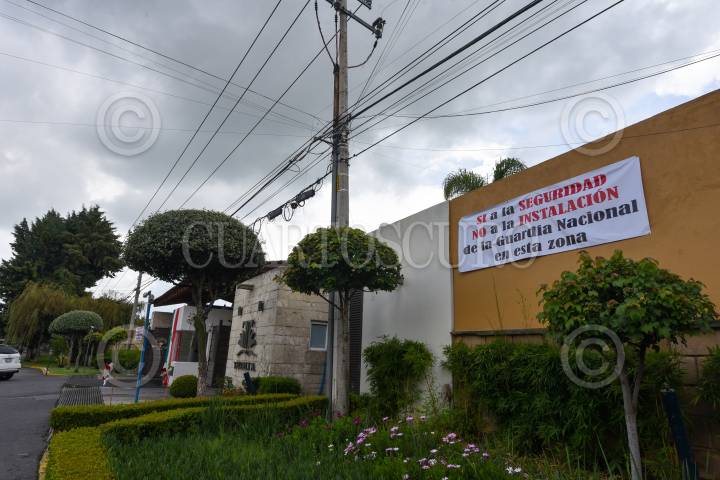METEPEC, ESTADO DE MÉXICO, 16SEPTIEMBRE2020.- Vecinos de Metepec se oponen a la construcción de la base de la Guardia Nacional en la colonia Llano Grande colocando mandas en Viveros a fraccionamientos manifestando su rechazo, después de que también fue rechazada la construcción en el Parque La Pila; el terreno en donde se llevará a cabo la construcción es propiedad del Estado de México. FOTO: CRISANTA ESPINOSA AGUILAR /CUARTOSCURO.COM