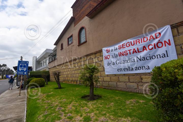 METEPEC, ESTADO DE MÉXICO, 16SEPTIEMBRE2020.- Vecinos de Metepec se oponen a la construcción de la base de la Guardia Nacional en la colonia Llano Grande colocando mandas en Viveros a fraccionamientos manifestando su rechazo, después de que también fue rechazada la construcción en el Parque La Pila; el terreno en donde se llevará a cabo la construcción es propiedad del Estado de México. FOTO: CRISANTA ESPINOSA AGUILAR /CUARTOSCURO.COM