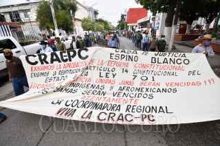 CHILPANCINGO, GUERRERO, 17SEPTIEMBRE2020.- Integrantes de las cinco casas de justicia de la Coordinadora Regional de Autoridades Comunitarias (CRAC) marcharon en Chilpancingo y protestaron en el Congreso del estado para exigir a los diputados que dictaminen y aprueben la llamada reforma indígena. Exigen que se apruebe la llamada Ley Indígena presentada por diputados de Morena, en la cual se pretenden modificar artículos a la segunda sección de la Constitución local sobre derechos de pueblos indígenas y afromexicanos. La iniciativa busca conservar, fortalecer y desarrollar sistemas normativos para la regulación y solución de los conflictos en sus territorios; garantizar la participación activa de las mujeres en los cargos públicos de manera prioritaria; acceder al uso y disfrute colectivo de tierras, territorios y recursos naturales; reconocimiento oficial de las lenguas Nahua, Tu’un Savi, Me’ Phaa, Ñ’omndaa y del Pueblo Afromexicano. También les otorga el derecho a proteger, preservar y conservar la integridad de sus tierras, territorios, medio ambiente, hábitat y recursos naturales; derechos culturales, económicos y sociales, entre otros. La iniciativa fue presentada el pasado 17 de diciembre y turnada a la Comisión de Asuntos Constitucionales y Jurídicos, la cual preside el perredista Bernardo Ortega Jiménez. Durante su mitin a las afueras del Congreso, el integrante de la CRAC, Sabas Aburto Espinobarro, dijo que se concentraron en Chilpancingo para exigir que se restituyan sus derechos como pueblos indígenas y policías comunitarias, los cuales les fueron quitados, consideró, en pasadas modificaciones legislativas, como la reforma de 2018 promovida por el gobernador Héctor Astutillo Flores, en la que se limitaron sus atribuciones de seguridad y justicia. FOTO: DASSAEV TÉLLEZ ADAME/CUARTOSCURO.COM