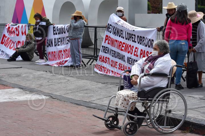 TOLUCA, ESTADO DE MÉXICO, 18SEPTIEMBRE2020.- Ejidatarios de San Buenaventura se manifestaron en Palacio de Gobierno exigiendo el pago de los terrenos utilizados para llevar a cabo parte de las obras del Tren Interurbano México-Toluca, en su mayoría son personas de la tercera edad que en varias ocasiones han realizado bloqueos pidiendo un alto al despojo del que fueron objeto. FOTO: CRISANTA ESPINOSA AGUILAR /CUARTOSCURO.COM
