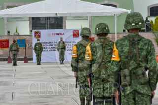 SANTA MARÍA RAYÓN, ESTADO DE MÉXICO, 18SEPTIEMBRE2020.- El General de Brigada Diolomado del Estado Mayor Francisco Jesús Leana Ojeda Comandante de la 22a Zona Militar encabezó la Ceremonia de clausura de 1er Escalón 2020, de la 1a fase de adiestramiento del C.A.C.I.A. FOTO: CRISANTA ESPINOSA AGUILAR /CUARTOSCURO.COM