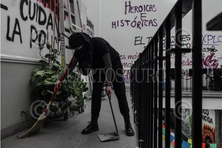 CIUDAD DE MÉXICO, 18SEPTIEMBRE2020.- Hoy se cumplen quince días de haber tomado las instalaciones de la Comisión Nacional De Derechos Humanos (CNDH) por parte de familiares de víctimas de desaparición forzada y de grupos feministas como el bloque Negro. Ante la salida de Yessenia Zamudio, representante del colectivo Ni una Menos y de las familias de víctimas de desaparición forzada, la hoy en día casa refugio Okupa se comienza a reorganizar en limpieza, comida y convivencia. FOTO: ANDREA MURCIA /CUARTOSCURO.COM