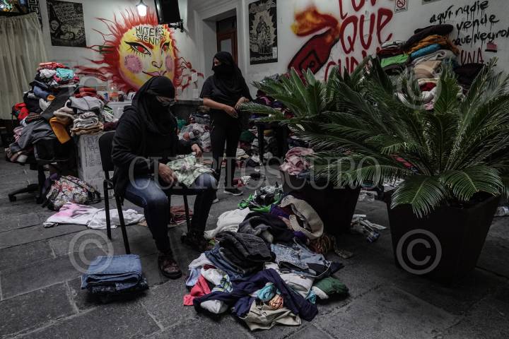 CIUDAD DE MÉXICO, 18SEPTIEMBRE2020.- Hoy se cumplen quince días de haber tomado las instalaciones de la Comisión Nacional De Derechos Humanos (CNDH) por parte de familiares de víctimas de desaparición forzada y de grupos feministas como el bloque Negro. Ante la salida de Yessenia Zamudio, representante del colectivo Ni una Menos y de las familias de víctimas de desaparición forzada, la hoy en día casa refugio Okupa se comienza a reorganizar en limpieza, comida y convivencia. FOTO: ANDREA MURCIA /CUARTOSCURO.COM