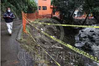 CIUDAD DE MÉXICO, 19SEPTIEMBRE2020.- Debido a las fuertes lluvias y a la creciente constante del Río Magdalena, vecinos de la alcaldía Magdalena Contreras, viven en constante riesgo gracias a los deslaves que ocurren cada vez más seguido en las viviendas y caminos que colindan con el río. Así mismo la contaminación de las aguas del último río de la ciudad ayudan a que drenajes y compuertas se bloqueen provocando desbordamientos. FOTO: ROGELIO MORALES /CUARTOSCURO.COM