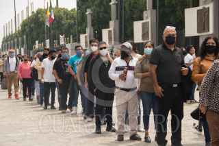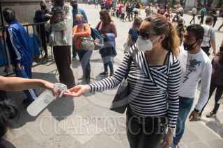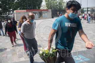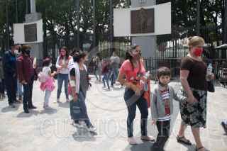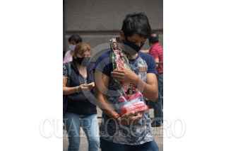 CIUDAD DE MÉXICO, 20SEPTIEMBRE2020.- Miles de Fieles Guadalupanos se dieron cita a visitar a la Virgen Morena, en el atrio de la Basílica, cumplen con las medidas sanitarias para poder entregar flores o bendecir sus imagenes. FOTO: VICTORIA VALTIERRA/CUARTOSCURO.COM
