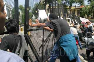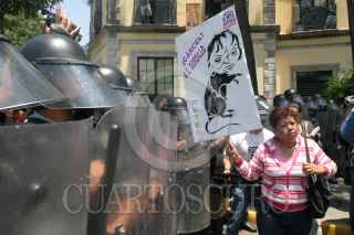 MÉXICO D.F. 15MAYO2006.- Integrantes de la CNTE, protestaron frente a la Secretaria de Gobernación, para demandar a las autoridades la liberación de los presos políticos de San Salvador Atenco y mejora de condiciones laborales. FOTO: Diego Gallegos/CUARTOSCURO.COM