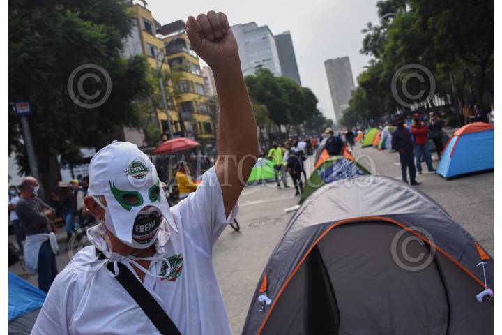 CIUDAD DE MÉXICO, 20SEPTIEMBRE2020.- Simpatizantes del Frente Nacional AntiAmlo (FRENA) continúan con su plantón sobre Av. Juárez ante la negativa de poder pasar rumbo al Zócalo por parte de elementos de la policía capitalina, al medio día más integrantes de esta organización llegaron en sus automóviles para apoyar a los manifestantes ya ubicados con sus casas de campaña tomando la glorieta de Bucareli al cruce con Reforma, impidiendo el tránsito en ambos sentidos. FOTO :DANIEL AUGUSTO /CUARTOSCURO.COM