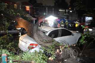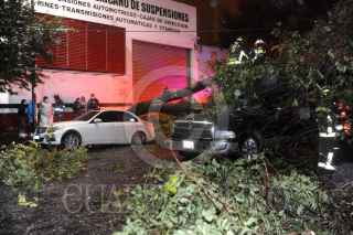 Ciudad de México, 21 septiembre 2020. Un menor quedo atrapado al interior de una camioneta que fue aplastada por un árbol que cayó sobre esta y un auto de lujo en calle Dr. Vera casi esquina con Dr. Barragán en la colonia Doctores en alcaldía Cuauhtémoc. Foto: Luis Carbayo/cuartoscuro.com