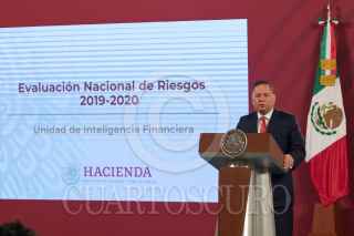 CIUDAD DE MÉXICO, 21SEPTIEMBRE2020.- Santiago Nieto Castillo, titular de la Unidad de Inteligencia Financiera (UIF); Juan Pablo Graf Noriega, presidente de la Comisión Nacional Bancaria y de Valores (CNBV); Jorge Meléndez Barrón, titular Unidad de Banca, Valores y Ahorro de la Secretaría de Hacienda y Crédito Público (SHCP), y Mireya Valverde Okon, directora general de Asuntos Normativos de la UIF, durante la presentación de la Evaluación Nacional de Riesgos 2019-2020, en Palacio Nacional. FOTO: MOISÉS PABLO/CUARTOSCURO.COM