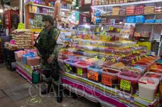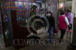 CIUDAD DE MÉXICO, 21SEPTIEMBRE2020.- Elementos de la Guardia Nacional resguardaron las inmediaciones de la Nave Mayor del Mercado la Merced para reforzar la seguridad de los locatarios y los clientes. Durante estas semanas realizan recorridos por las mañanas en la Nave Menor y Mayor del mercado. FOTO: GRACIELA LÓPEZ /CUARTOSCURO.COM