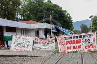 PÁTZCUARO, MICHOACÁN, 22SEPTIEMBRE2020.- Por segundo día consecutivo, integrantes de la Coordinadora Nacional de Trabajadores de la Educación (CNTE) en Michoacán, bloquean vías del tren en cuatro municipios. De acuerdo al reporte emitido las primeras horas de este martes, los docentes mantienen obstaculizados tramos ferroviarios en Pátzcuaro, Caltzontzin (Uruapan), Nueva Italia (Múgica) y Maravatío. Los manifestantes, pertenecientes a la fracción magisterial ‘Poder de Base’, exigen que se paguen los adeudos que mantiene el gobierno estatal con los trabajadores de la educación. También se suman a la petición de normalistas egresados que piden se asignen plazas laborales para los graduados de las generaciones 2019 y 2020, de las distintas escuelas normales oficiales de la entidad. FOTO: JUAN JOSÉ ESTRADA SERAFÍN/CUARTOSCURO.COM