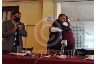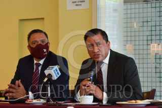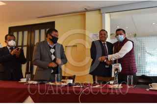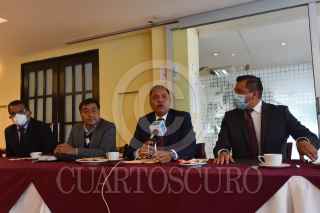 TOLUCA, ESTADO DE MÉXICO, 22SEPTIEMBRE2020.- Ricardo Moreno Bastida acompañado por los alcaldes de Tenancingo y Almoloya de Juárez, y el Diputado local Margarito González, anunció la adición a MORENA del alcalde de Xalatlaco, Rene Reza Molina, quien perteneciera al PVEM. FOTO: CRISANTA ESPINOSA AGUILAR /CUARTOSCURO.COM