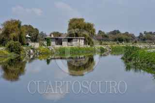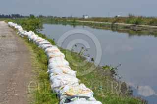 SAN MATEO ATENCO, ESTADO DE MÉXICO, 22SEPTIEMBRE2020.- A orilla del Río Lerma en San Mateo Atenco colocaron costales de arena para evitar riesgos a las personas que viven a un costado del cauce ante un posible desbordamiento por el aumento del nivel del río debido a las últimas lluvias que se han registrado, en algunas zonas se han detectado desgajamientos. FOTO: CRISANTA ESPINOSA AGUILAR /CUARTOSCURO.COM